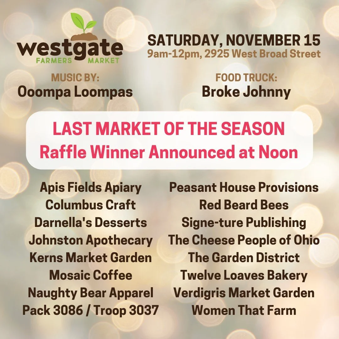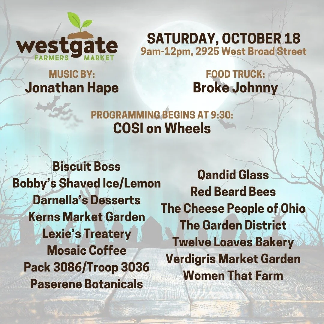 The Westgate Farmers Market takes place the first and third Saturday of each month, June through October, from 9:00 AM to noon. We are located on the greenspace in front of the West Gate Masonic Lodge.